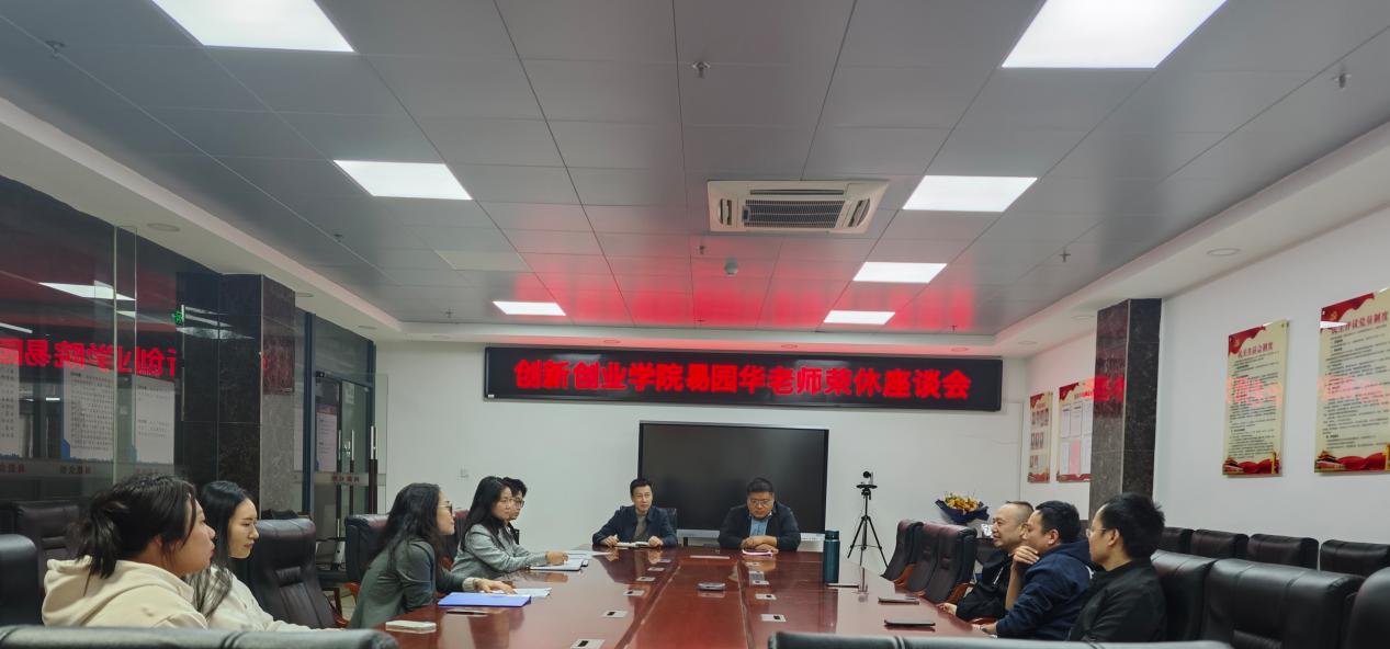 座谈会上,吴山院长代表全院向易园华老师致以诚挚的感谢与崇高的敬意。吴山指出,易老师是双创学院的奠基者与开拓者之一,长期主讲《创业基础》课程,并悉心指导学生创新训练项目,多次带队在“中国国际大学生创新大赛”中取得优异成绩,为学院发展作出了突出贡献。