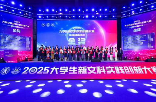 (创新创业学院 供稿)11月30日,由全国新文科教育研究中心主办,西安交通大学、山东大学联合承办的2025年大学生新文科实践创新大赛全国决赛落下帷幕,我校选派的三支参赛团队凭借扎实的实践成果与创新思维脱颖而出,斩获两项金奖,彰显了学校新文科人才培养的过硬实力。