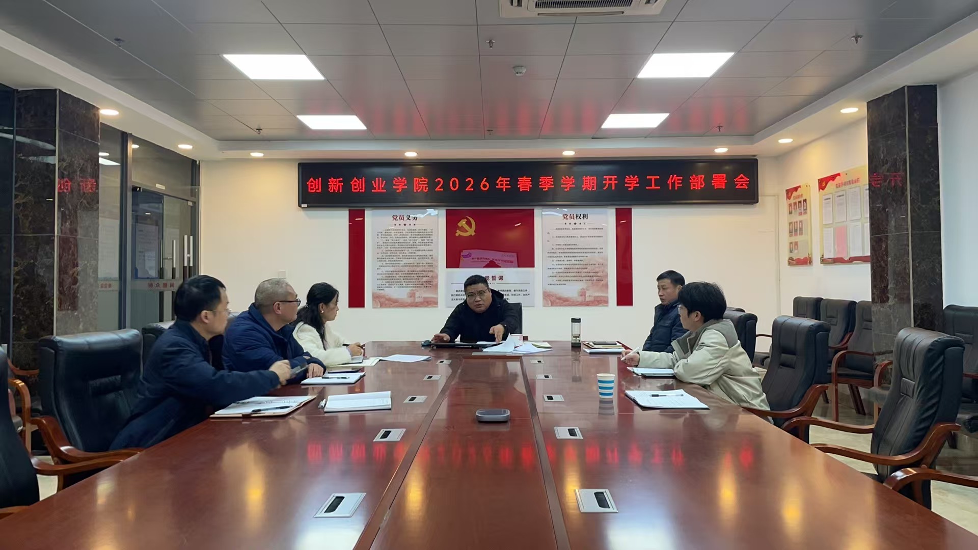 为明确新学期工作方向,统筹推进双创学院高质量发展各项工作,3月5日,创新创业学院院长吴山主持召开2026年春季学期开学工作部署会。会议全面总结2025年工作成效,深入解读学校“十五五”发展规划,系统部署2026年重点工作任务,为新学期工作开好局、起好步奠定坚实基础。